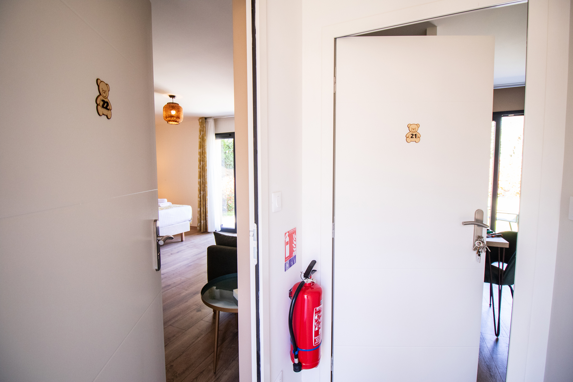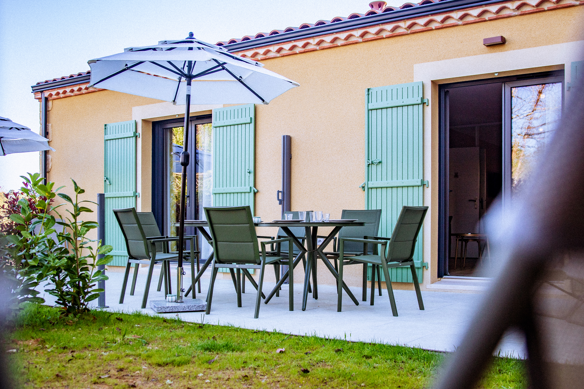 Ces chambres avec une terrasse privée, sont équipées d’un salon de jardin, de transats, d’un parasol et ouvrent de plain pied sur le parc.